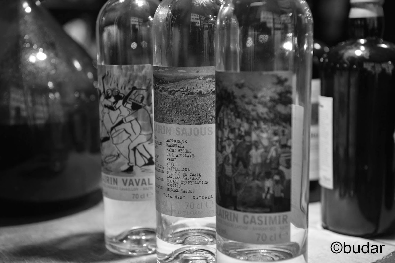 Sur la photo de gauche, en plus des trois bouteilles sur lesquelles je vais revenir, l’ordinateur portable sur lequel Daniele nous a montré bon nombre de photos d’un de ses voyages à Haïti et surtout, bien sûr, des distilleries, ce qui nous donna une idée des conditions dans lesquelles ces rhums (clairins) sont élaborés.