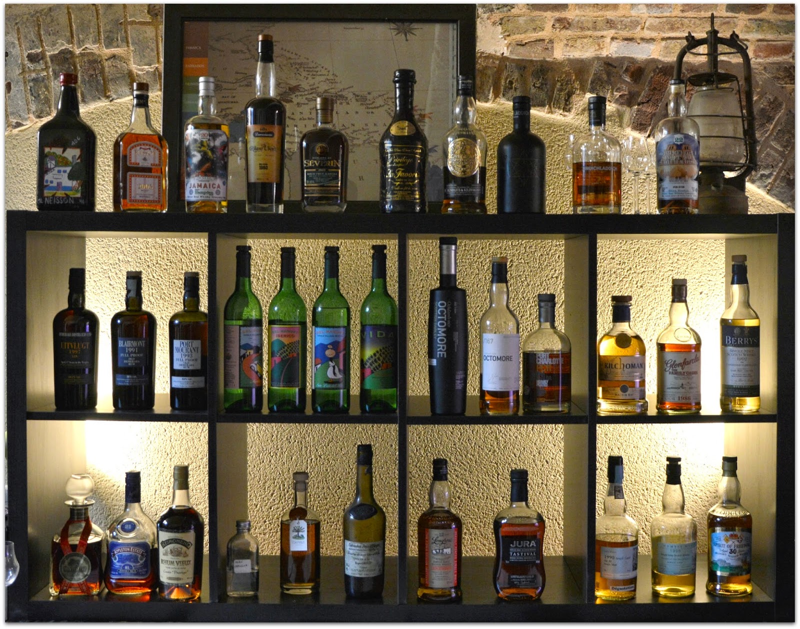 Je vois quatre rhums que je n’ai pas encore eu l’occasion de goûter, dont le Montebello 1982 dans sa carafe à ruban rouge bien reconnaissable.