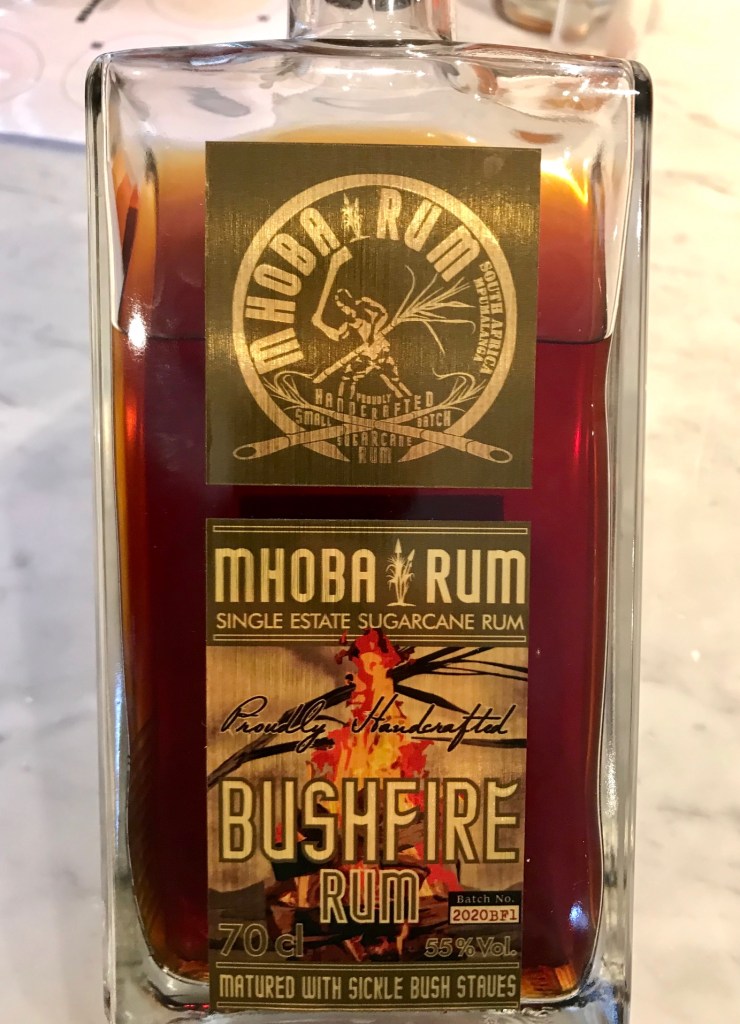 , distillerie d’Afrique du Sud, qui travaille le pur jus de canne. Ce Bushfire (55%) est travaillé avec des morceaux d’un bois local, ce qui va lui procure un caractère très particulier. Au nez cela donne un mélange entre jus de canne, cendre et barbecue