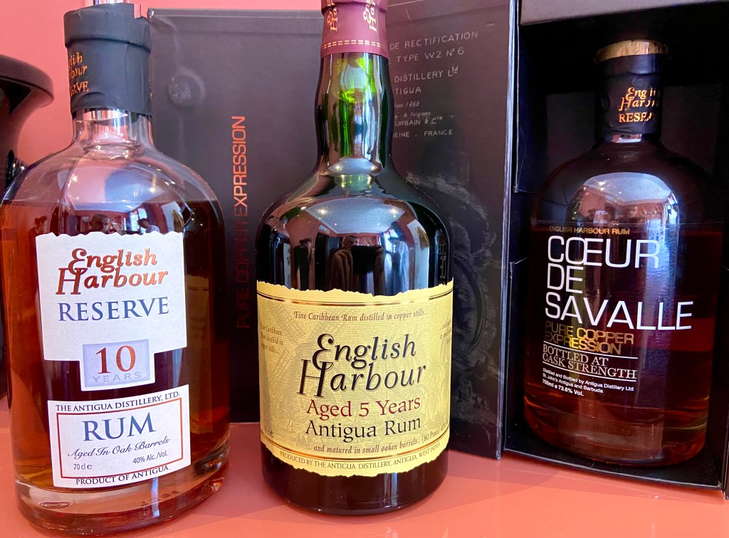 Une chambre était occupée par les rhums English Harbour de la petite île d’Antigua. Là aussi, cela faisait un paquet de temps que je ne m’y étais pas frotté et mon principal souvenir de cette marque vient de mes dégustations du millésime 1981, dont je vous parlais ici et là. Cette fois-ci étaient présentés les classiques 5 ans et 10 ans ainsi qu’une curiosité.