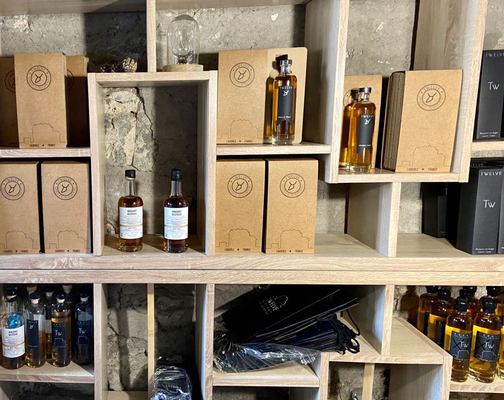 En parlant de fûts, Florent en a accumulé de toutes sortes : whisky, rhum, vins (beaucoup de différents), sherry ou encore des fûts utilisés par Cédric Brément pour le vieillissement de sa recette vanille/noix de macadamia (les fruits sont toujours dedans, alors non ça ne fera pas du whisky mais ça peut faire quelque chose de rigolo). Le whisky Twelve destiné à rester au catalogue de manière permanente est d’ailleurs un assemblage d’eaux de vie de malt qui ont été élevées dans des fûts différents (je vous en disais un mot ici). Les deux autres références sorties, victimes de leur succès, sont déjà épuisées ; il va donc falloir attendre les prochains single casks pour voir ce que la distillerie aveyronnaise nous réserve. J’avais justement pu tous les déguster au salon France Quintessence et, moi qui n’y connais pas grand-chose en single malts, ils m’avaient tous plu dans leurs styles très différents.